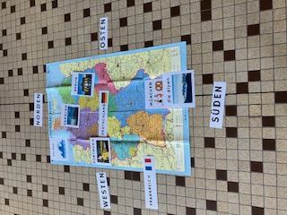 Durant une heure, les quatre classes de 6èmes ont joué en s'exprimant en allemand. Ils ont appris à dire comment ils s'appelaient, où ils habitaient et quels étaient leurs loisirs. Tout cela grâce à un jeu éducatif. Ensuite, à l'aide d'une carte géante, ils ont découvert où se situait l'Allemagne par rapport à la France....tout cela en langue allemande ! Les élèves étaient acteurs de la séance et ont fort apprécié cette intervention. Une façon d'apprendre l'allemand de façon ludique en continuité de ce que Mme Dubouis propose lors du club allemand les jeudis de 12h30 à 13h30. Ce club est ouvert à tous les élèves de 6ème.